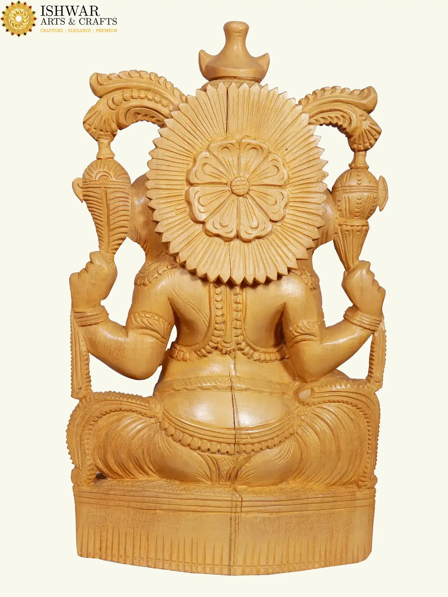 This sacred invocation celebrates Lord Ganesha as Dukhharta Sukhkarta—the remover of sorrow and the bestower of joy. The exquisitely carved whitewood idol embodies this divine essence, presenting the beloved Gajanana in tranquil majesty. Seated gracefully upon a lotus pedestal in Utkutakasana, he radiates serenity, wisdom and auspiciousness, inviting peace and prosperity into every space he graces.