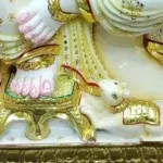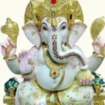 Lord Ganesha, revered as the universal king and the eternal remover of obstacles, is celebrated as the embodiment of wisdom, prosperity and auspiciousness. His divine presence is invoked at the commencement of every sacred undertaking, for he is the guardian of success and the patron of arts and sciences. This magnificent marble murti, sculpted from the pristine stone of Vietnam, radiates purity and elegance, capturing the grandeur of Ganapati enthroned in regal splendour.