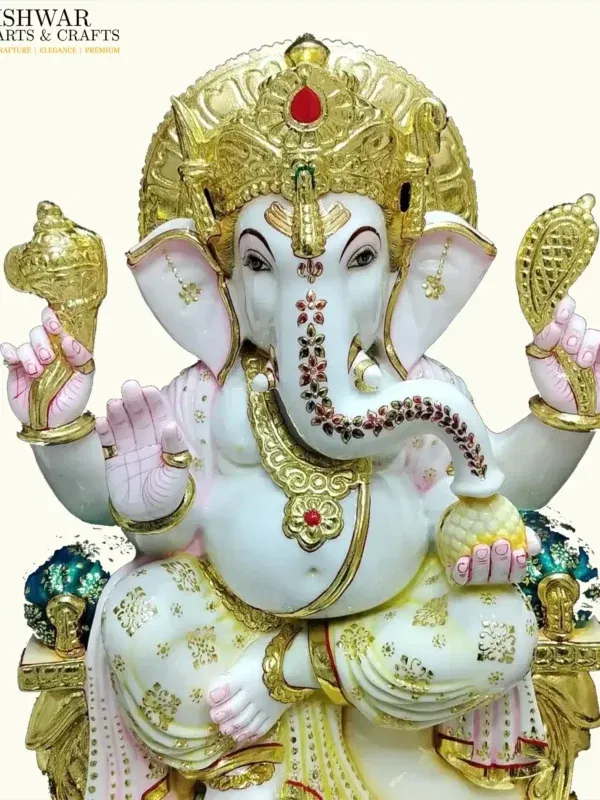 24″ Sitting Lord Ganesha Statue in Vietnam Marble | Handmade in India