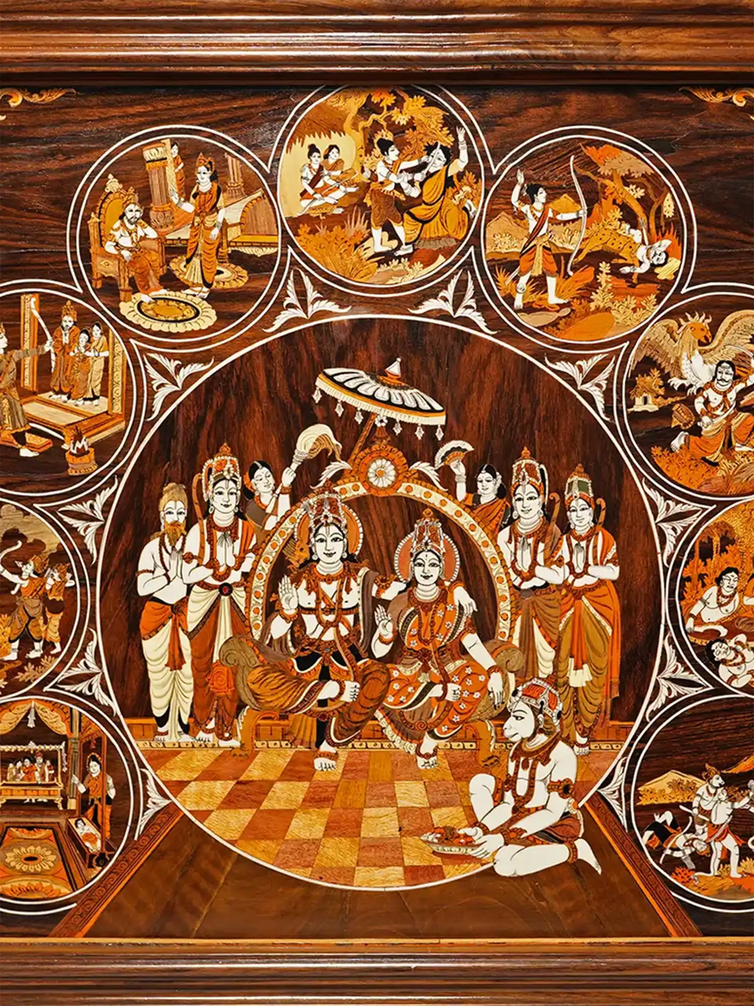 35″ Life of Lord Rama – Ram Darbar | Rosewood Panel With Inlay Work | Handmade in India