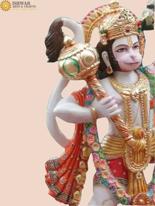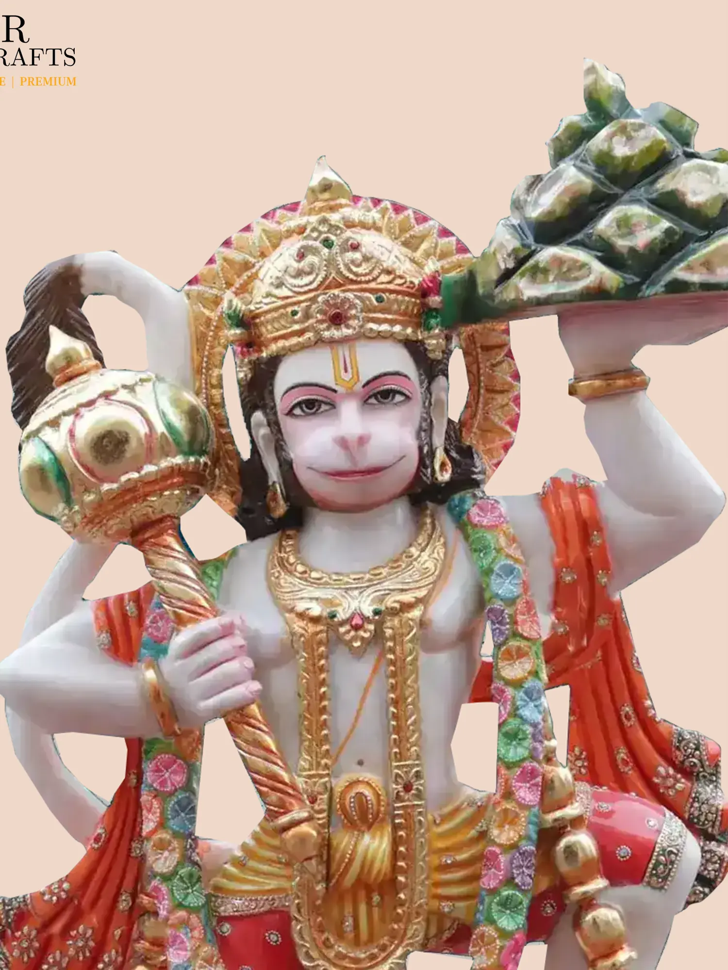 Crafted from pure Makrana marble, this statue radiates purity and timeless elegance, serving not merely as an artistic creation but as a sacred beacon of inspiration. To welcome Hanuman into one’s home or temple is to invite courage, devotion and divine energy. His image becomes a constant reminder that with unwavering faith and selfless service, every challenge can be overcome and every path illuminated by divine grace.
