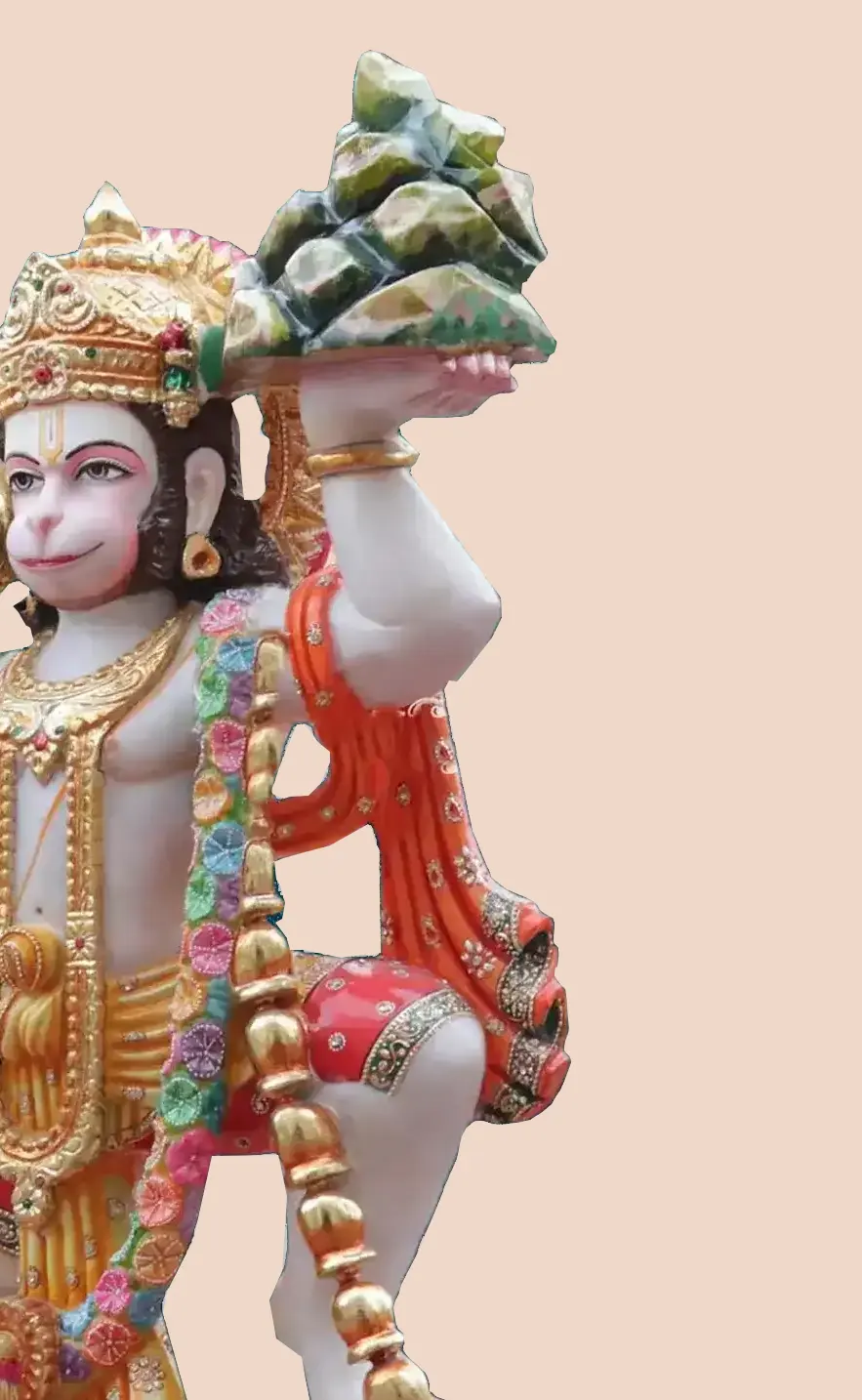 Lord Hanuman, the eternal servant of Shri Rama, stands as the embodiment of strength, devotion and humility. His divine presence is celebrated across the ages as the protector of dharma and the unfailing source of courage. This marble murti, sculpted with precision and reverence, captures the essence of Hanuman’s boundless energy and unwavering loyalty, inviting devotees to contemplate the virtues of faith, perseverance and selfless service.