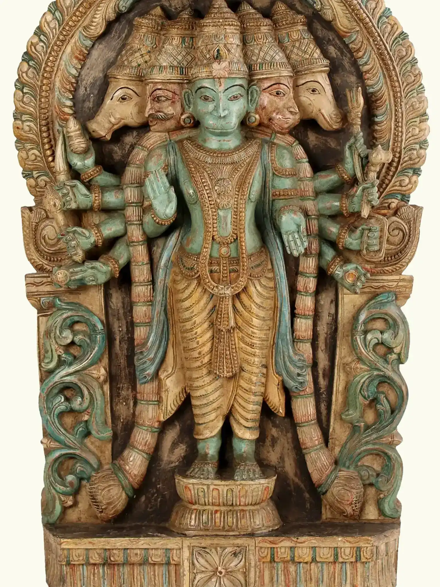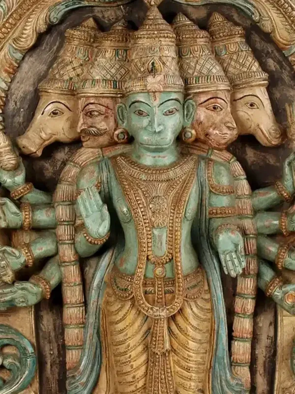 36″ Large Wooden Standing Panchmukhi Lord Hanuman Wall Panel | Made in India