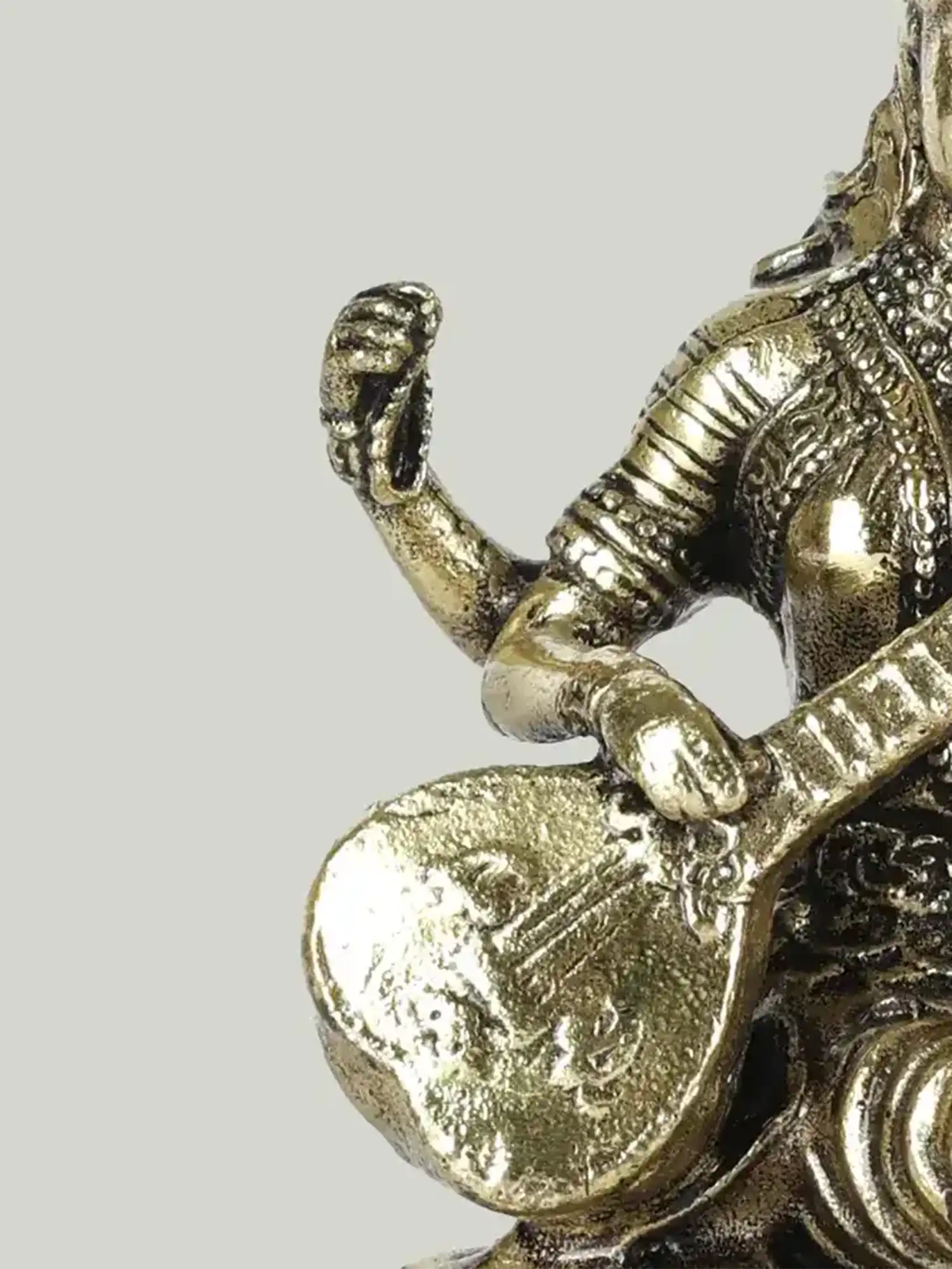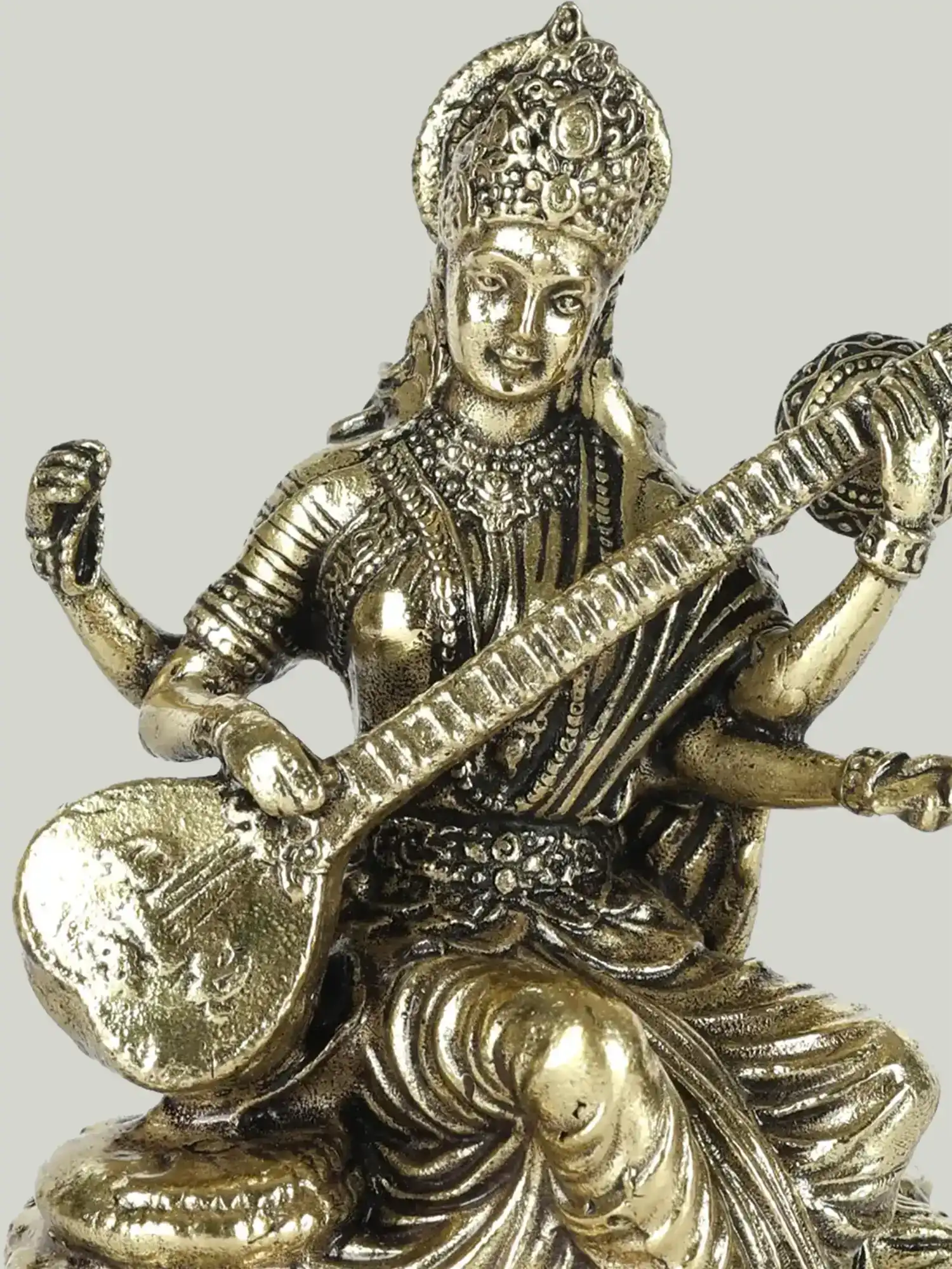 5" Superfine Small Saraswati Devi Statue Playing Veena | Handcrafted Brass Statue