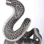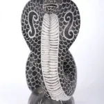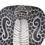 From the sacred shores of Mahabalipuram, where artistry and spirituality intertwine, emerges this Hooded Black Cobra Sculpture. Carved from a single piece of dark stone, it embodies the primal energy of the serpent, a creature revered in Hinduism and Indian mythology as a guardian of treasures, a symbol of renewal and a vessel of cosmic power.