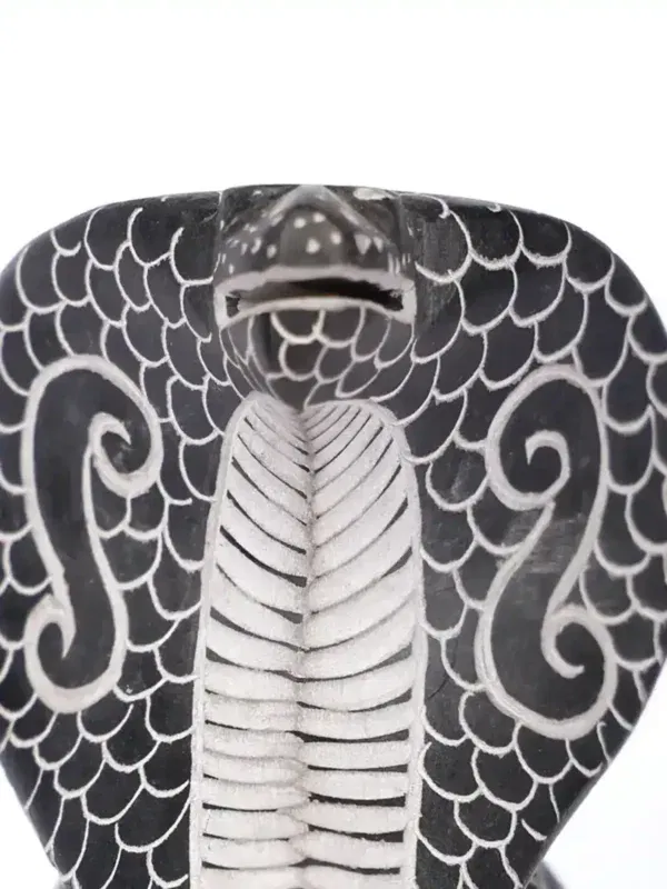 • Craftsmanship: Each scale is meticulously carved, the hood flared in a posture of alert watchfulness.