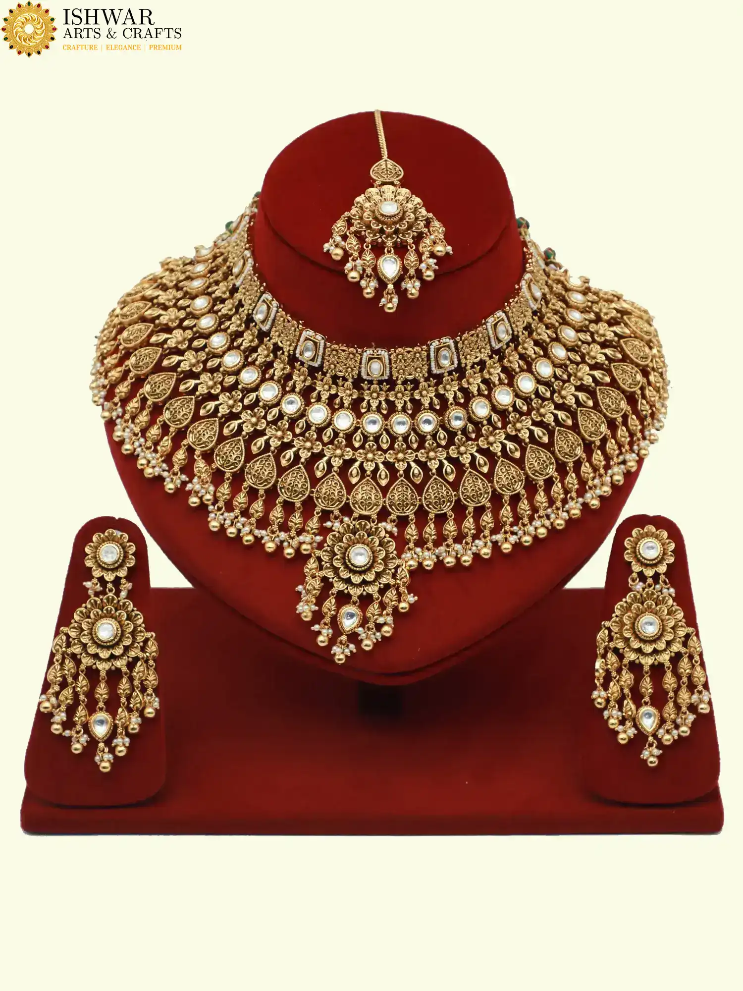Crafted in durable brass with a premium polish, this jewelry set adds timeless elegance to any bridal or festive wardrobe.