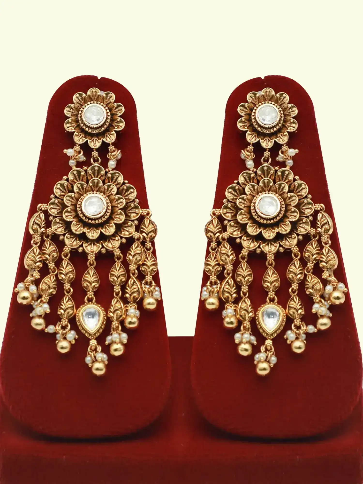 Designed for modern brides who love regal, traditional Indian jewelry, this set features intricate detailing, premium quality stones and a luxurious antique gold finish that enhances the beauty of every wedding outfit.