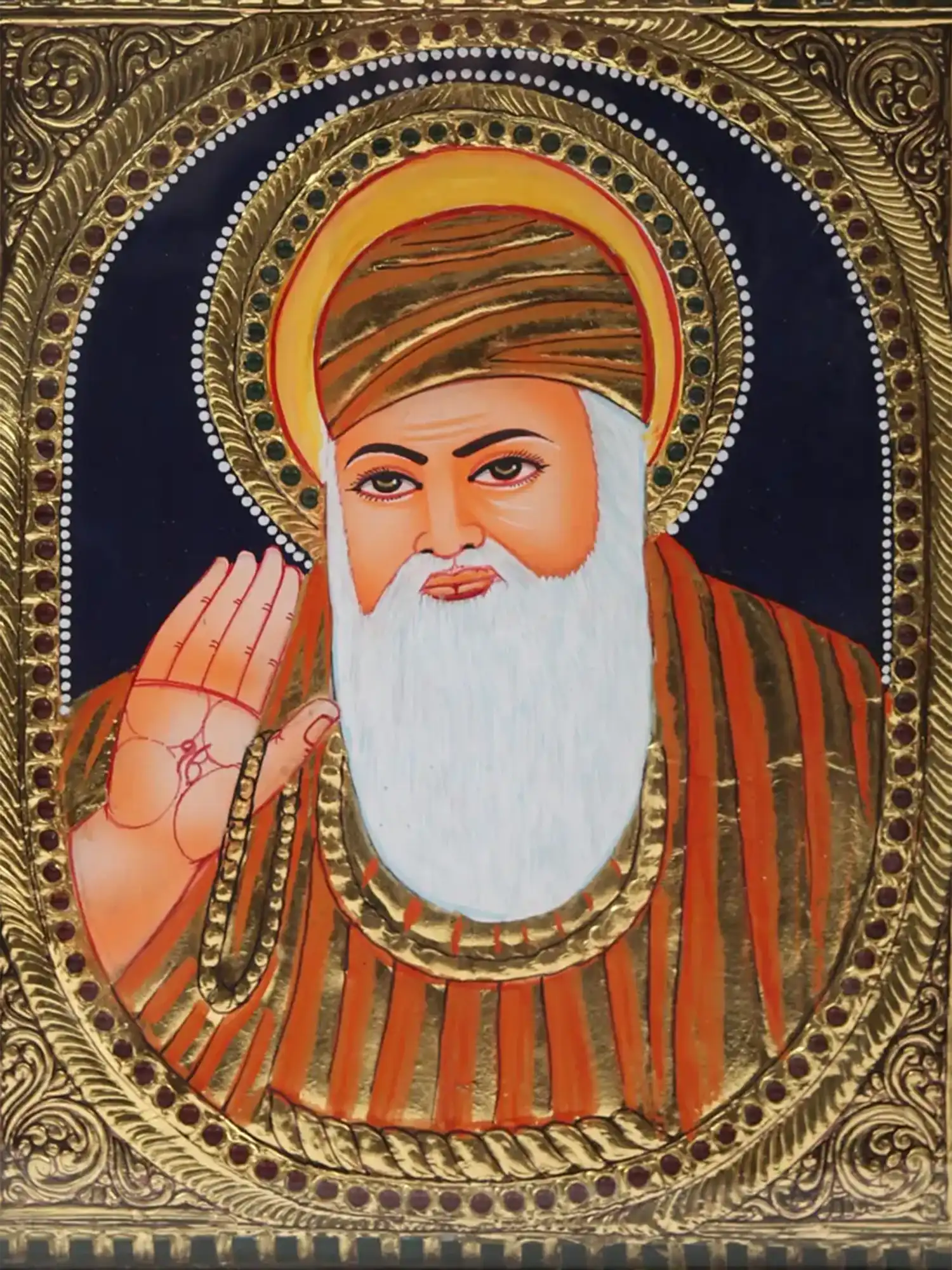 Guru Nanak Sahib Tanjore Painting | Traditional Colors With 24K Gold | Teakwood Frame | Handmade | Made In India