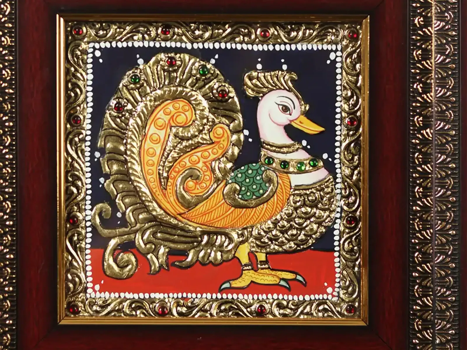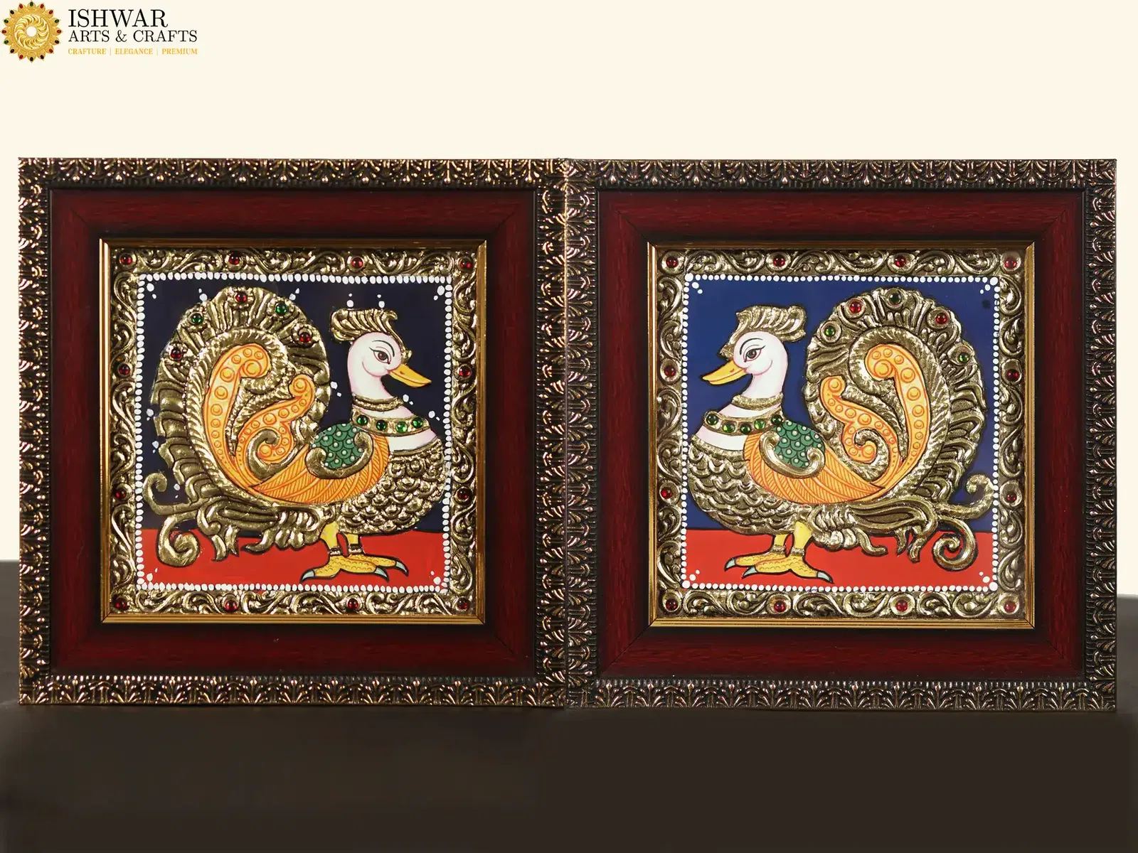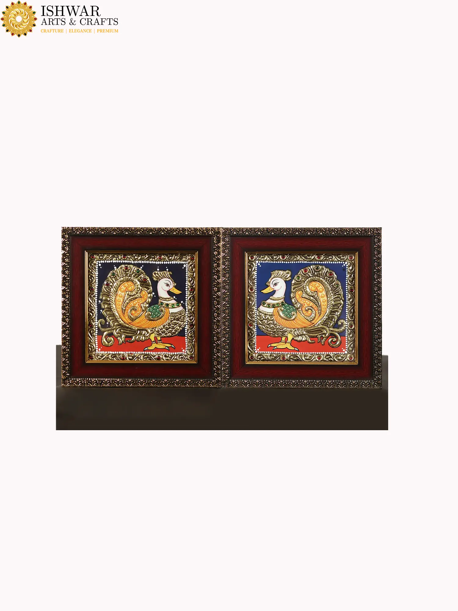 Pair of Peacock (Annam) Tanjore Painting with Frame, Handmade, Ishwar Arts and Crafts