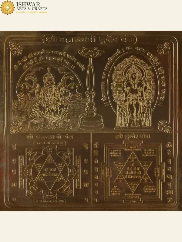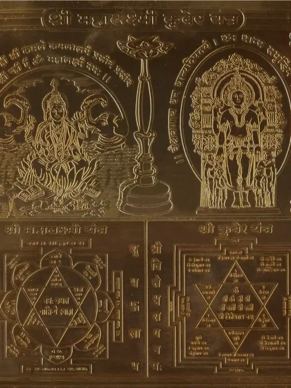 Removing the ashtadala padma reveals the Kubera Yantra, dedicated to the guardian of celestial wealth. This subtle architectural layering reflects the interwoven energies of Lakshmi and Kubera, amplifying the yantra’s power to attract abundance and dissolve scarcity.