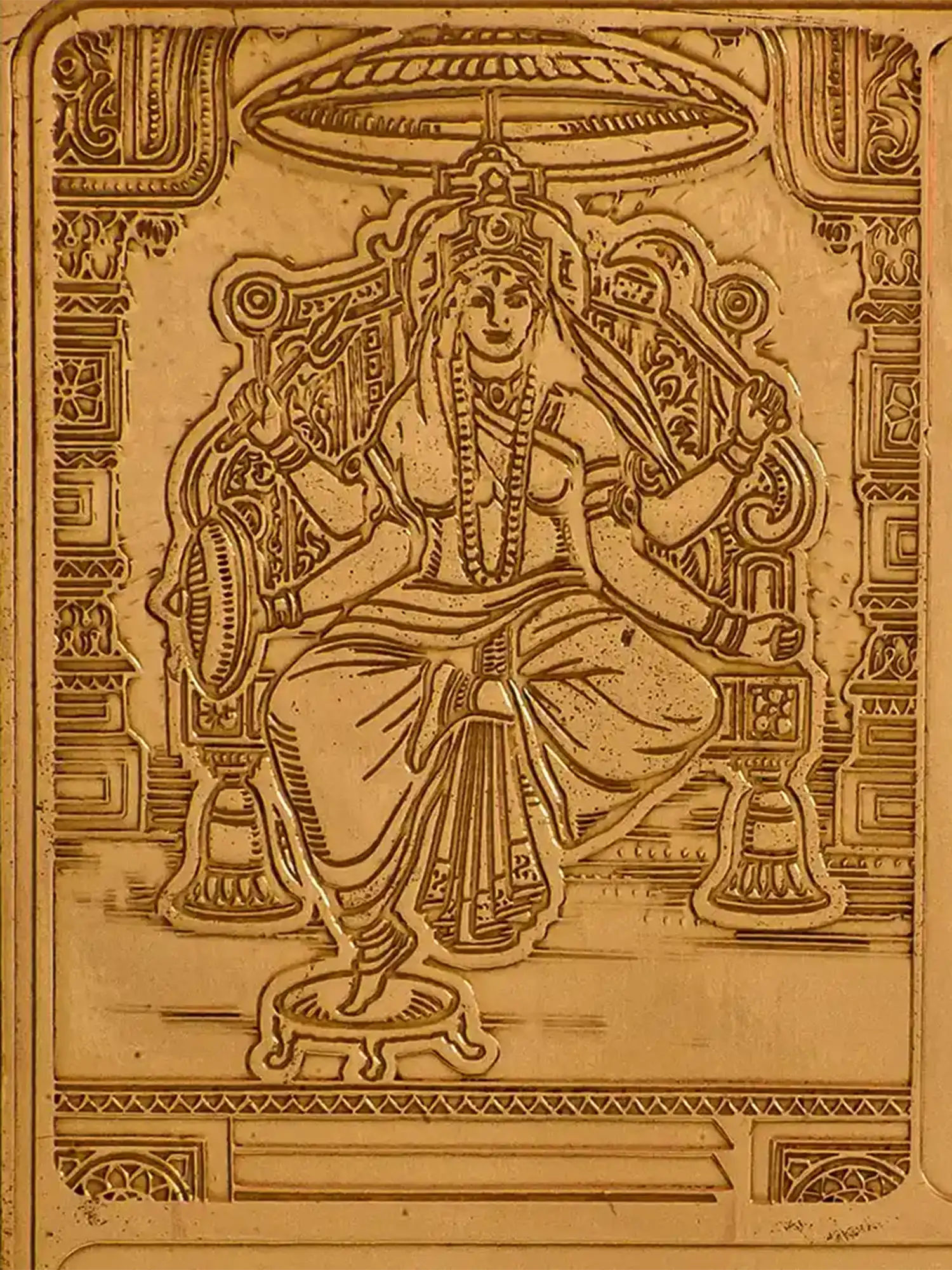Matangi represents the transcendental aspect of Saraswati, guiding devotees beyond conventional knowledge into deeper realms of mystical wisdom. The copper medium enhances the yantra’s potency, as copper is traditionally associated with purity, energy conduction and spiritual resonance. The intricate geometric patterns of the yantra focus the practitioner’s mind, aligning thought and devotion with the Goddess’s blessings.
